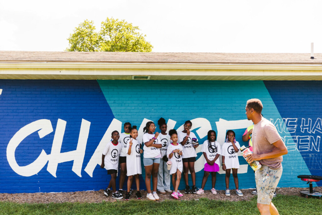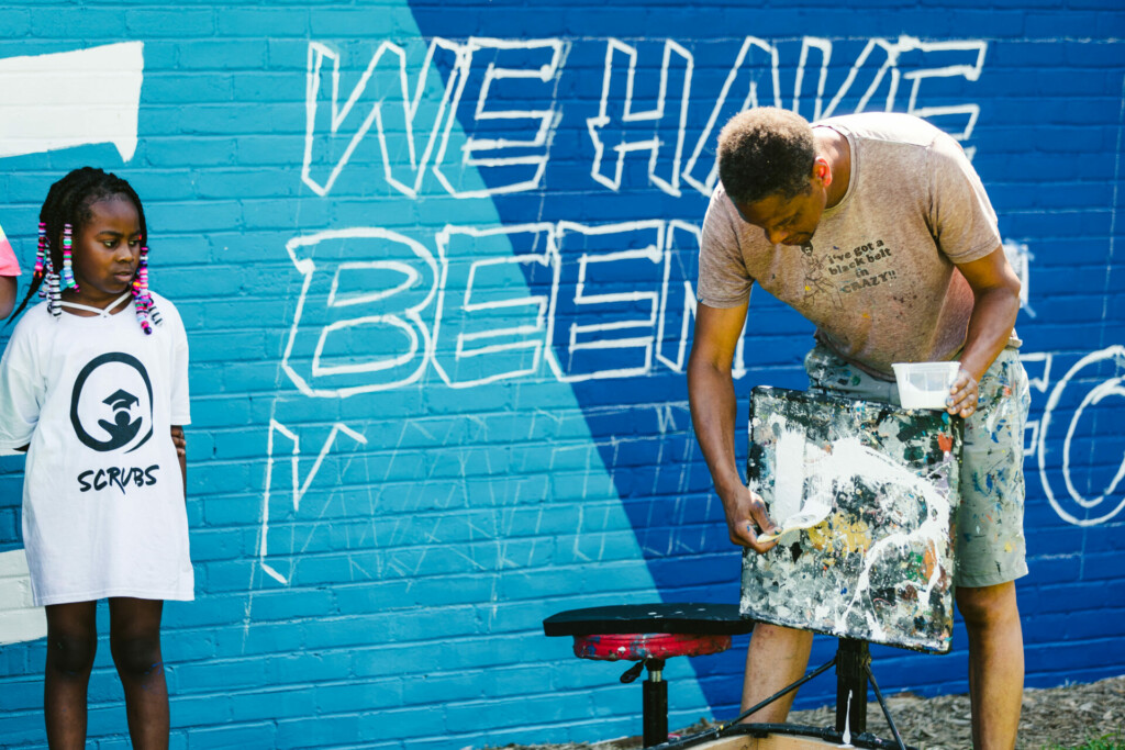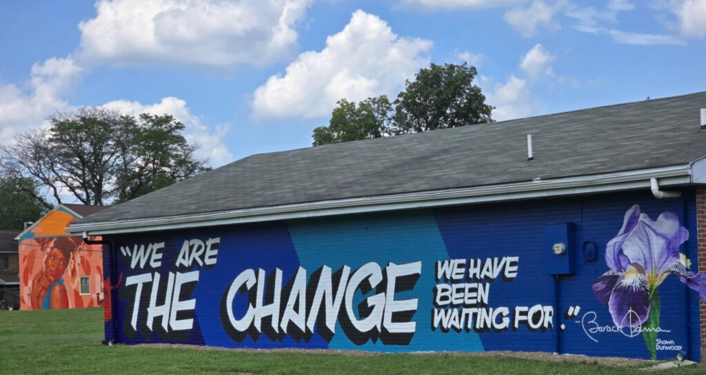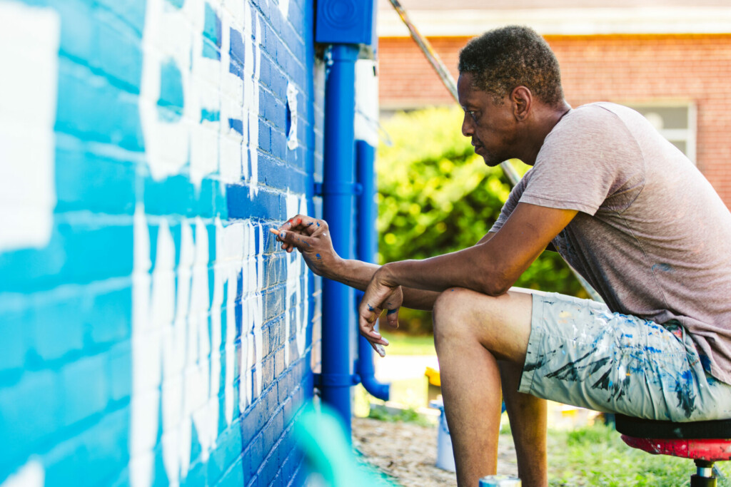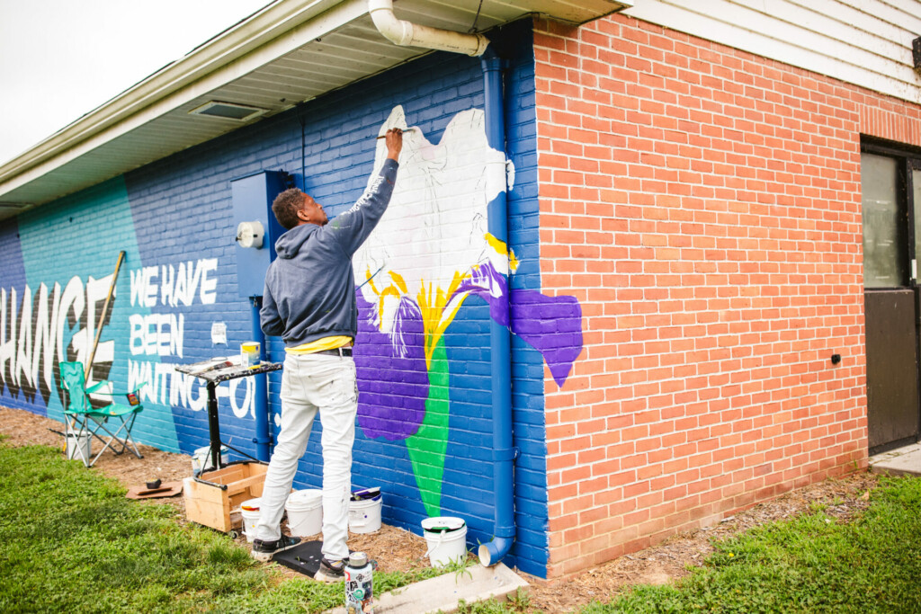 “I had an amazing experience interacting and painting with neighbors of Hall Manor,” Dunwoody says. “It feels good to have folks come talk to you about how your mural makes them feel.”