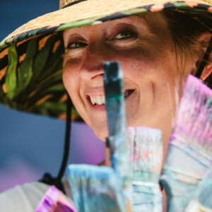 Harrisburg-based artist Sarah Eberly, is a self-described lover of color, travel, flora, boba and family. Sarah spent the last two decades slathering the walls of her home city of Columbus, Ohio in happy hues. She moved to Harrisburg in July 2024.
