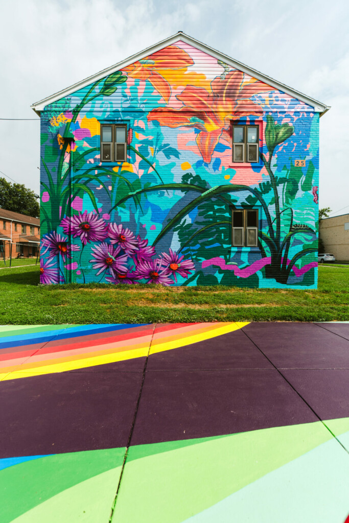 This bright, hopeful, nature-inspired mural was thought up by Harrisburg-based artist Sarah Eberly, a 2024 transplant originally from Ohio.