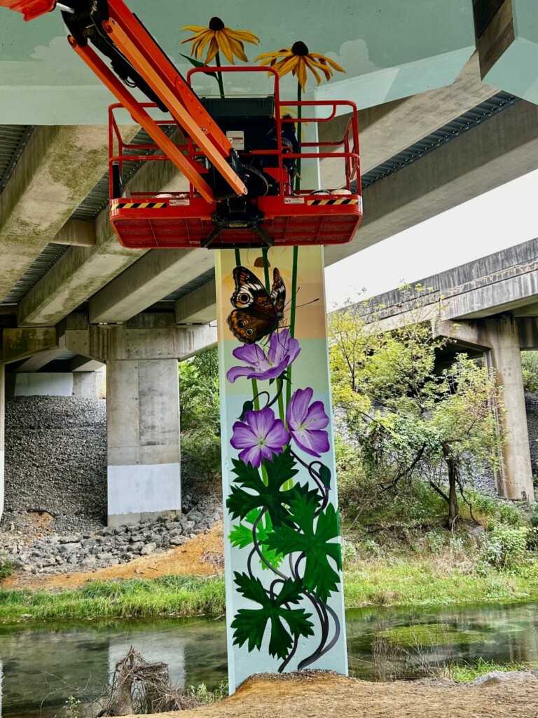 Tucked beneath a stretch of I-81 in Carlisle, artist Suzanne Rende brought a splash of nature to cement bridge piers on the Letort Spring Run Nature Trail in the fall of 2025.